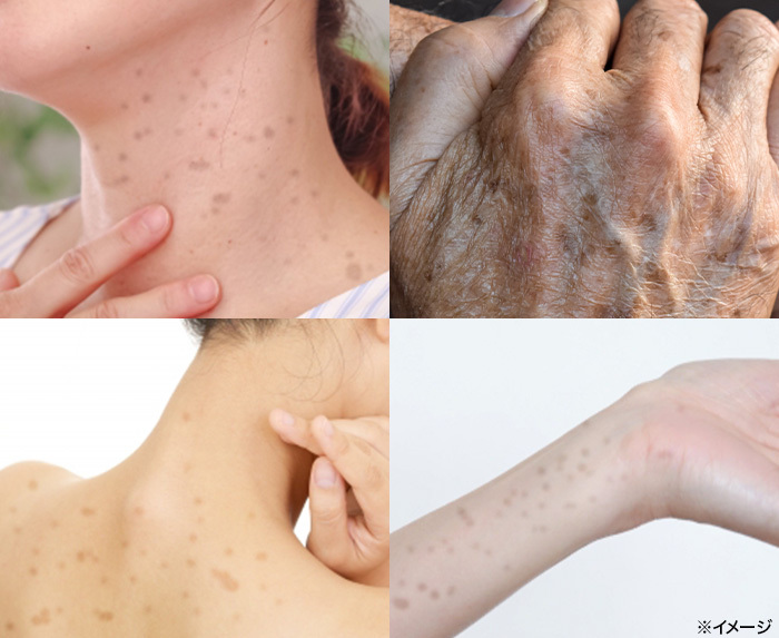 腕や首など全身にシミが